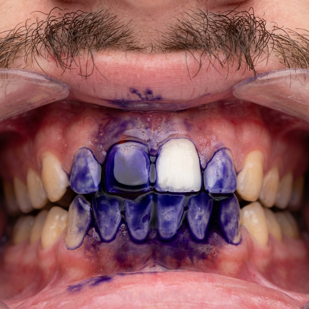 Aplicar el púrpura en los dientes neutraliza los matices amarillos, ayudando a revelar una sonrisa más blanca y renovada.
